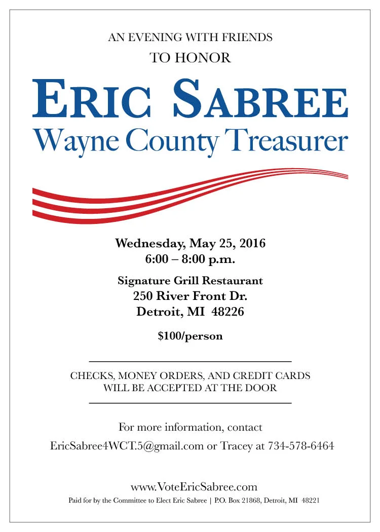 An Evening with Friends to Honor Eric Sabree Wayne County Treasurer